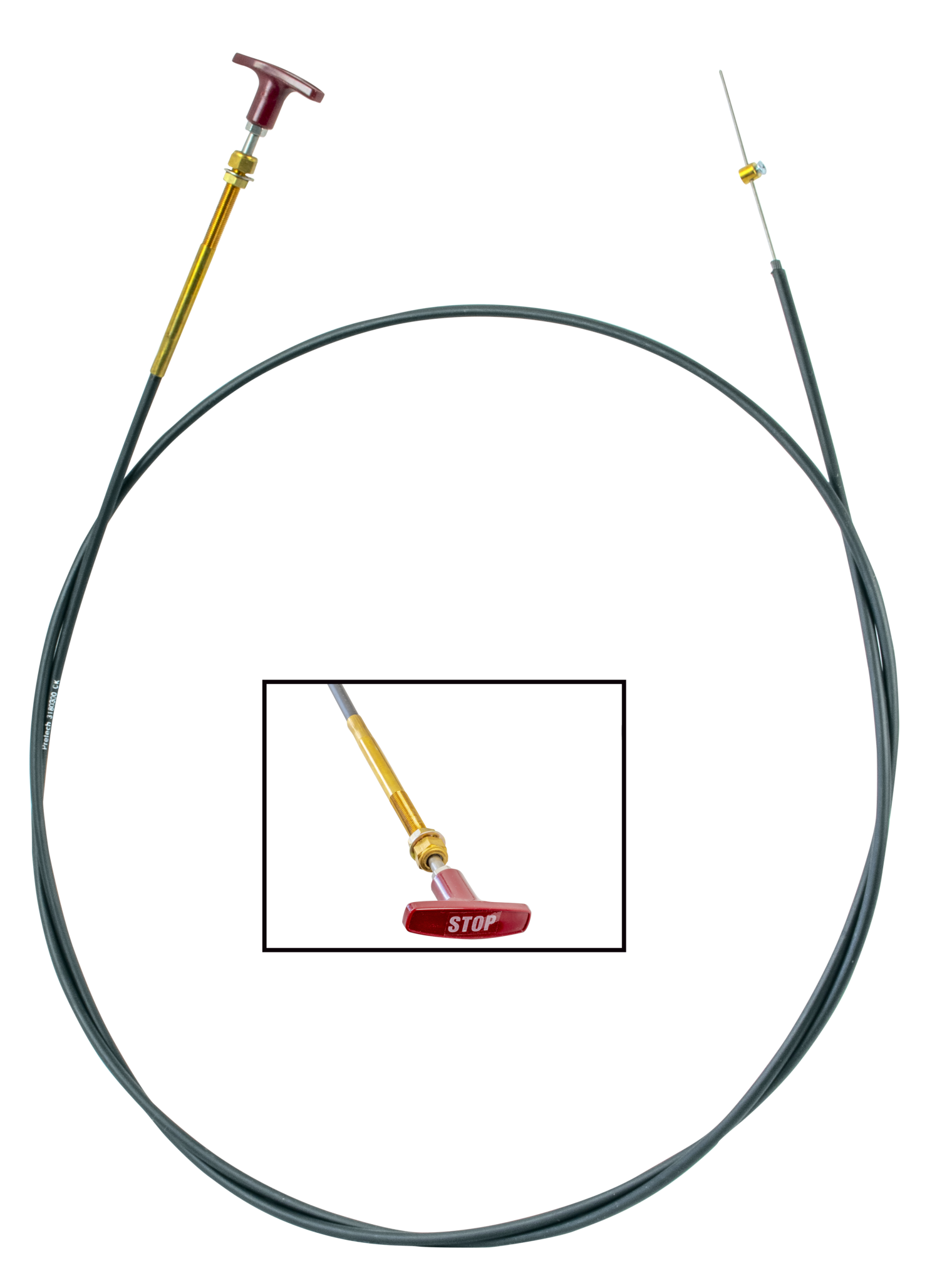 The Pretech T handle cable is primarily designed as a pull-to-stop control and has STOP marked on it.