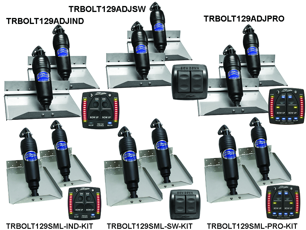 Each electric trim tab kit comes with a pair of stainless steel trim plates and a pair of electric rams with 6ft harness. Also included in each kit is a 20ft harness with waterproof connectors to complete the wiring from rams to switch panel.