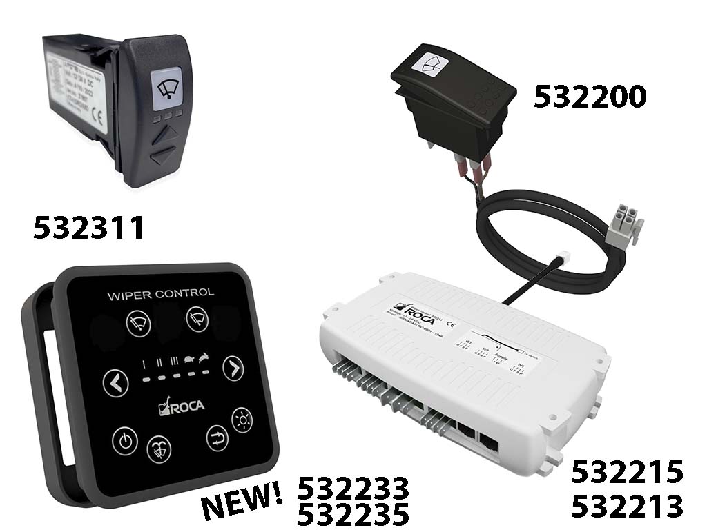 Roca control systems. The control box allows complete individual control of the motors when used with the new flat panel control system. The washer system can also be controlled from the same unit.